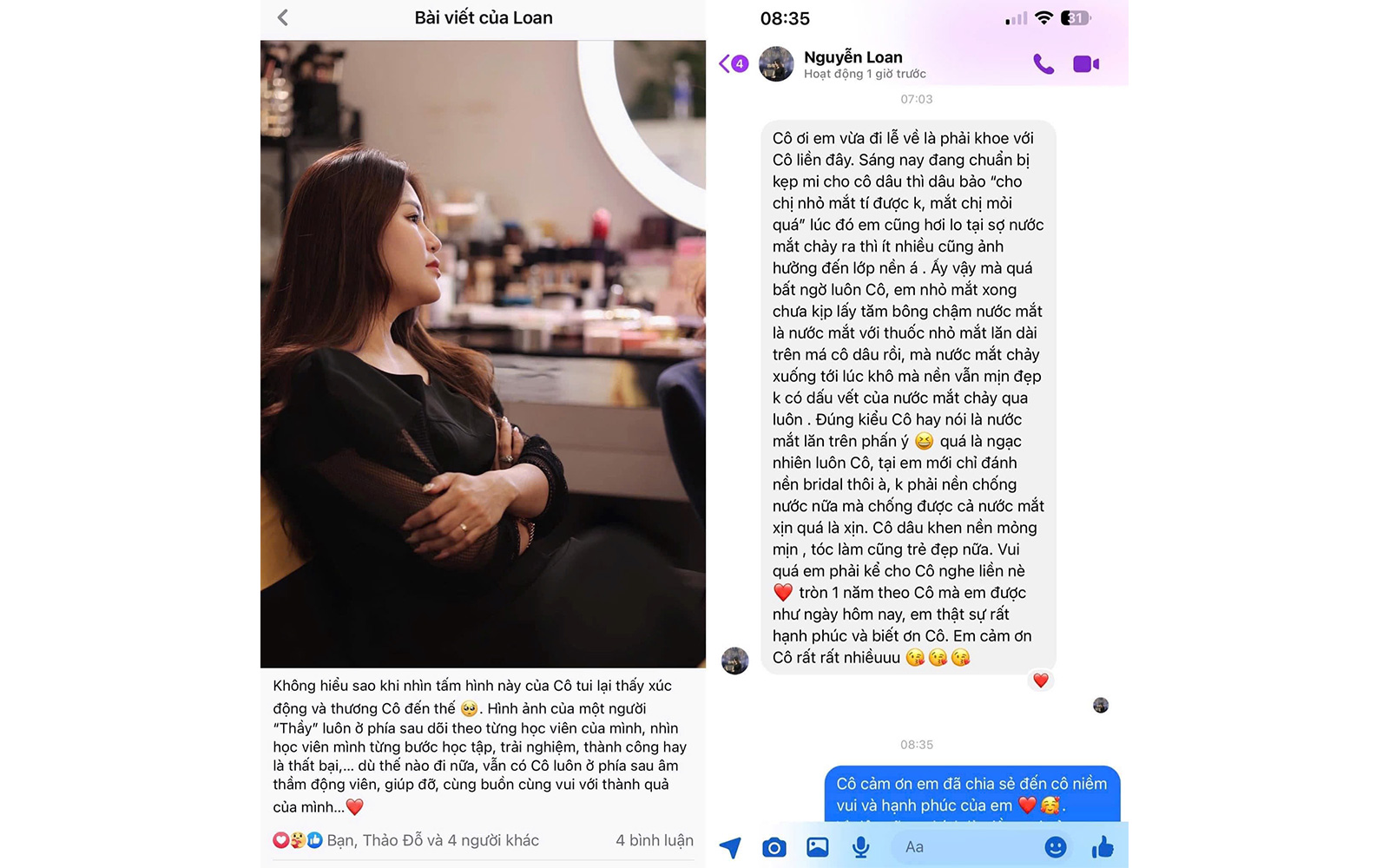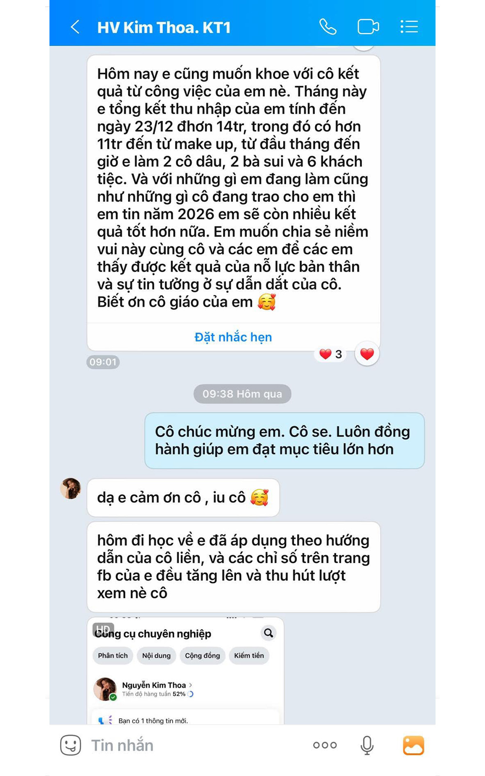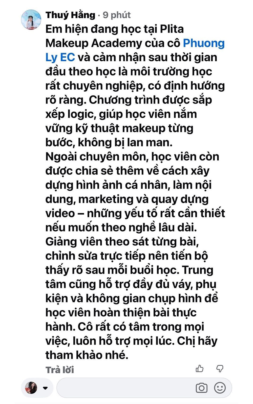 Tôi mong rằng khi tham gia khoá học bạn sẽ có cho mình một lộ trình và bộ công cụ đắc lực cộng với kiến thức thức kỹ thuật makeup nâng cao. Bạn sẽ được nhiều khách hàng tìm đến.